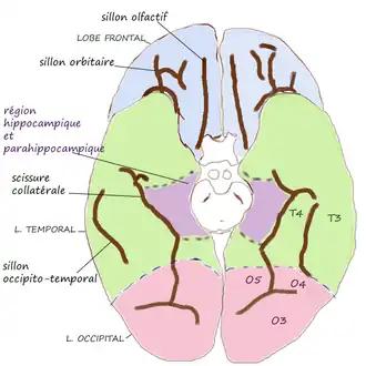 | Face inférieure du cortex | Sillons de la face inférieure |