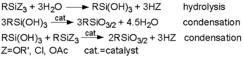 - (en) Cet article est partiellement ou en totalité issu de l’article de Wikipédia en anglais intitulé « Silsesquioxane » (voir la liste des auteurs).