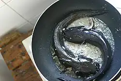 Clarias sp. directement frit à la casserole.