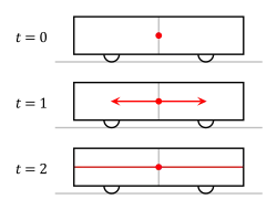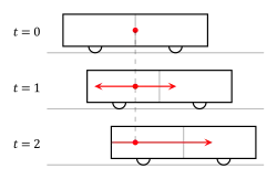 En relativité restreinte, toute interaction (et toute information) est transmise au maximum à la vitesse de la lumière qui est la même dans tous les référentiels inertiels, ou encore indépendante de la vitesse de sa source[2]. Voici une situation inspirée d'un exemple donné par Einstein[3], relatif à un train :
