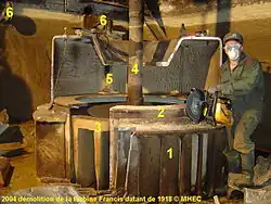 - La cloche, d'un poids de 2 tonnes, elle est intercalée entre les directrices et la roue afin d'augmenter (manœuvre vers le haut) ou de diminuer (manœuvre vers le bas) l'entrée de l'eau donc, de modifier la puissance de la turbine.