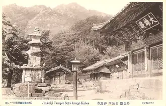 Le temple comprenait des sanctuaires, des quartiers d'habitation et des cuisines ordonnés autour d'une cour faisant face au pavillon de prière principal. Contrairement à de nombreux temples coréens qui possède une porte majestueuse à l'écart des autres bâtiments, l'entrée de ce temple est situé sous le pavillon Manse (le pavillon de la vie éternelle), une structure à deux étages servant au stockage en bas et proposant une salle de méditation en haut.