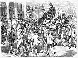 Les ruées vers l'or en Australie attirent de nombreux Chinois. 11 493 Chinois arrivent en 1855 à Melbourne[2] Ce chiffre est d'autant plus impressionnant, que cinq ans auparavant, la ville ne comptait qu'environ 25 000 habitants. En raison du racisme largement répandu au Parlement et dans les mines d'or, les premières restrictions à l'immigration chinoise et les première lois visant spécifiquement les Chinois sont votées en 1855. Cependant, du fait de la longueur des frontières entre les colonies d'Australie et de faiblesse de leur surveillance le nombre de Chinois dans les mines d'or continue d'augmenter. De violentes émeutes anti-chinoises éclatent en 1857 dans la vallée de la Buckland, et en 1860 et 1861 en Nouvelle-Galles du Sud, auxquelles s'ajoutent des discriminations quotidiennes. Toutefois, les Chinois s'implantent durablement, en plusieurs des quartiers où ils vivent alors forment aujourd'hui encore des Chinatowns. Ils établissent également des sociétés, dont certaines sont encore actives aujourd'hui, qui fournissent du soutien aux Chinois des colonies.