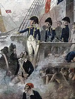 Combat de la frégate française La Sirène contre une division anglaise, par Pierre-Julien Gilbert. | |