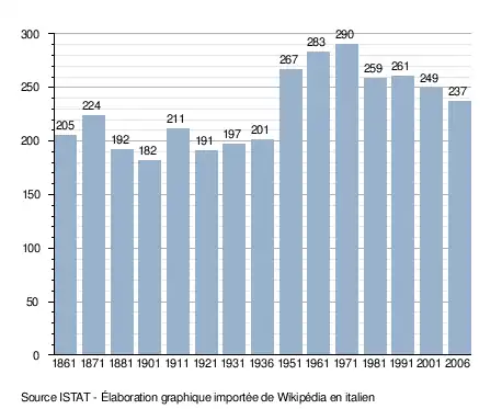 - ↑ (it) Popolazione residente e bilancio demografico sur le site de l'ISTAT.