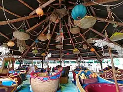 Les chaudrons[6] (de couleurs rouge, bleue ou jaune) tournant pouvaient accueillir cinq personnes. L'explorateur et le chef cannibale de la chanson sont présents sur la colonne de trois mètres de haut, au centre de l'attraction entre 1988 et 2021[4],[7]. Depuis 2002, l'attraction est couverte avec un toit constitué de grands roseaux, pour que l'attraction puisse aussi fonctionner par mauvais temps ou en hiver. Ce toit fut créé par le créatif Michel den Dulk[4].