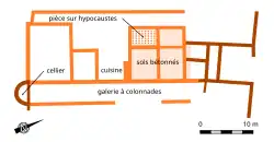 Une domus est identifiée dans les années 1970 entre le sanctuaire et les thermes. L'affectation de certaines pièces est clairement attestée : une cuisine et son fourneau, une pièce chauffée par hypocauste, un cellier, une galerie à colonnades en façade[14]. Si son premier état date de l'époque d'Auguste ou de Tibère, elle s'agrandit progressivement jusqu'à la fin du Ier ou au début du IIe siècle. Elle semble abandonnée entre la fin du IIe et le milieu du IIIe siècle[15].