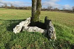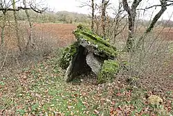 - ↑ Le caractère mégalithique de cette pierre est douteux : la pierre est de petite taille et le bassin en surface est de forme trop régulière.