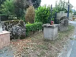 - ↑ Menhir trouvé près du moulin de Farret et ayant servi de pierre à bâtir.