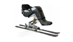 le dualski: la coque d'assise est rigoureusement identique au monoski. En revanche, le châssis, toujours amorti, se termine dans sa partie basse par 2 sabots en alu, distants d'environ 10 cm, articulés via un parallélogramme permettant le recopiage cinématique entre les 2 skis. Les 2 skis sont donc toujours parallèles, mais peuvent se soulever en permanence l'un par rapport à l'autre. On s'approche ainsi de la configuration idéale d'un skieur valide avec son jeu de jambes: les 2 skis sont toujours en contact avec la neige, mais épousent la complexité du terrain. Lors des virages, on n'a plus seulement un passage de carre à carre (comme en uniski), mais aussi une répartition des charges entre ski intérieur et ski extérieur. Seul l'écartement des pieds n'est pas géré: il reste, par construction mécanique, constant en dualski (env. 10 cm). Bien que reposant sur 2 skis, l'équilibre du dualski est plus difficile à maintenir, notamment à basse vitesse car les 2 skis sont librement articulés selon l'axe longitudinal: la coque bascule plus facilement sur le côté. L'ensemble tire son équilibre avec l'augmentation de la vitesse. Il est donc plus complexe à comprendre par un débutant, de par sa skiabilité très évoluée. Il est en revanche rapidement plus performant: il permet d'exploiter les skis de carving et autorise une grande stabilité à haute vitesse, tout en étant relativement maniable dans le pentu ou les bosses, pour peu qu'on prenne soin du choix de ses skis en fonction de son programme.