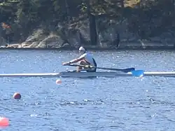 Rameur sur un skiff.