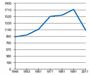 - 1 2 (sq) « Évolution de la population 1948-2011 », sur pop-stat.mashke.org (consulté le ).