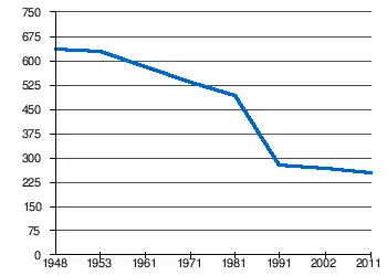 En 2002, l'âge moyen de la population était de 41,3 ans pour les hommes et 49,7 ans pour les femmes[7].