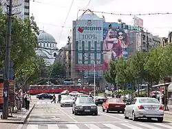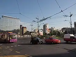 La place de Slavija (Trg Slavija) se trouve à 1,5 km au sud de Terazije, souvent considérée comme le centre de Belgrade.