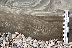 Le phénomène (slumping) se produit quand des sédiments subaquatiques encore gorgés d'eau glissent latéralement sous l'effet de la gravité. La raideur de la pente (quelques degrés peuvent suffire à l'engendrer[1]) et l'accumulation sédimentaire sont les facteurs générateurs[2]. Un lien avec des tremblements de terre a parfois été constaté. On suspecte aussi le rôle d'hydrates de gaz piégés dans les sédiments, dont l'équilibre chimique se déplacerait lors d'une baisse de pression (i-e baisse du niveau des eaux) ou d'une augmentation de température, produisant un décollement déstabilisant la couche[3]. Tout type de sédiment peut être affecté[2].