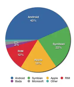 Au premier trimestre 2011, 428 millions de téléphones mobiles (dont 23,6 % étaient des smartphones, 101 millions) sont vendus dans le monde, +19 % par rapport à la même période en 2010 (+85 % pour les smartphones). Au troisième trimestre 2011, 117 millions de smartphone sont vendus[48].