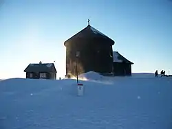 En 1850 fut construit le refuge polonais (anciennement refuge silésien) qui brûla 7 ans plus tard. Il fut cependant reconstruit en 1862. Touristes et pèlerins y séjournèrent jusqu'en 1967, année de démantèlement du refuge. Il fut remplacé en 1974, à la suite de cinq ans de travaux, par l'hôtel-restaurant actuel en forme de trois soucoupes superposées, œuvre des architectes polonais Lipiński et Wawrzyniak[5]. Le , la soucoupe supérieure abritant la station météorologique s'est effondrée. L'accident serait dû à un défaut de construction et à une quantité inhabituelle de neige sur le toit de la soucoupe[6]. Des travaux de reconstruction sont en cours en 2011.