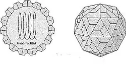 Les virions sont des particules quasi sphériques, d'environ 25 à 30 nm de diamètre à symétrie icosaédrique (T=3). La capside est constituée d'une seule couche de 180 sous-unités de protéines CP d'environ 26–31 kDa[2].