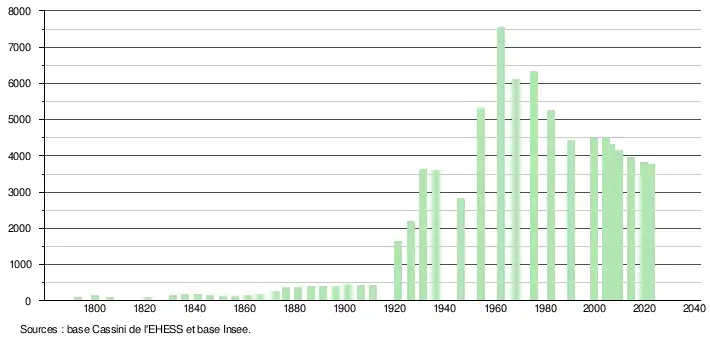 - ↑ Population municipale de référence en vigueur au 1er janvier 2025, millésimée 2022, définie dans les limites territoriales en vigueur au 1er janvier 2024, date de référence statistique : 1er janvier 2022.