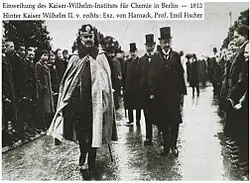 - ↑ La cérémonie d'inauguration s'est tenue le 11 octobre 1910 dans la grande salle de l’Université Frédéric-Guillaume de Berlin, et la séance inaugurale du Conseil le 11 janvier 1911 dans la salle de conférences de l’Académie royale des Beaux-Arts sur la Pariser Platz de Berlin (d'après Kurt Nowak, Die Kaiser-Wilhelm-Gesellschaft, p. 55 et légende des photos pp. 58-59)