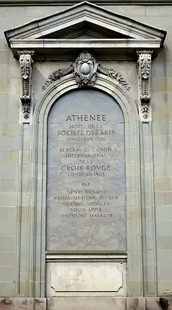 La Société est propriétaire depuis 1863 du Palais de l’Athénée[3], qui lui a été donné par Jean-Gabriel Eynard.
