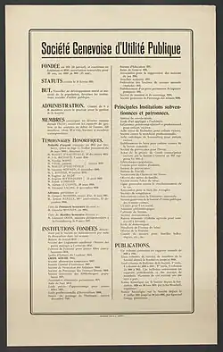 La Société genevoise d’utilité publique (SGUP) a été fondée en janvier 1828 à la suite d’une invitation de la Société suisse d’utilité publique (SSUP)[note 1], créée le , à Zurich. Elle s’attache dès lors aux questions d’intérêt public à Genève, aussi bien sur le plan spirituel que matériel.