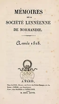 La Société linnéenne de Normandie a publié les Mémoires de la Société linnéenne du Calvados de 1824 à 1825, les Mémoires de la Société linnéenne de Normandie de 1826, puis le Bulletin de la Société linnéenne de Normandie à partir de 1856.