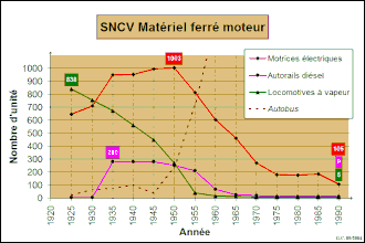En 1922, 3 515 km de lignes ferrées sont exploitées directement par la SNCV et seulement 779 km par des sociétés fermières[5].