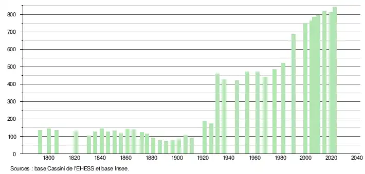 - ↑ Fiches Insee - Populations de référence de la commune pour les années 2006, 2007, 2008, 2009, 2010, 2011, 2012, 2013, 2014, 2015, 2016, 2017, 2018, 2019, 2020, 2021 et 2022.