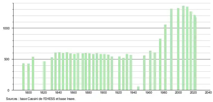 - ↑ Fiches Insee - Populations de référence de la commune pour les années 2006, 2007, 2008, 2009, 2010, 2011, 2012, 2013, 2014, 2015, 2016, 2017, 2018, 2019, 2020, 2021 et 2022.