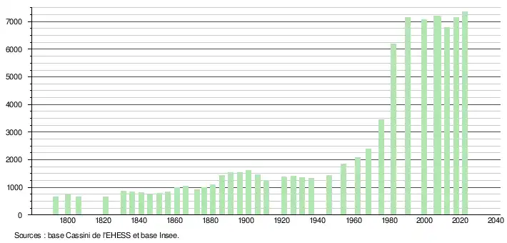 - ↑ Population municipale de référence en vigueur au 1er janvier 2025, millésimée 2022, définie dans les limites territoriales en vigueur au 1er janvier 2024, date de référence statistique : 1er janvier 2022.