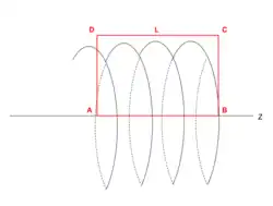 En appliquant le théorème d'Ampère, on peut calculer le champ magnétique à l'intérieur du solénoïde. Pour cela on définit un contour d'Ampère (contour fermé et orienté) : on considère un rectangle ABCD de longueur AB = l (cf. figure ci-contre). Le rectangle enlace N spires, chacune parcourue par le même courant d'intensité i.