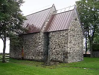 Construite en pierre vers 1150 , elle a été utilisé jusqu'à 1842 puis a commencé à se dégrader. Le peintre Johan Jacob Bennetter achete le jardin de l'église en 1871 et en fait son atelier et sa résidence. En 1907, sa famille s'installe dans une nouvelle maison construite dans le jardin. Le sous-sol de cette maison est conservé comme un cratère au sud-ouest du jardin de l'église.