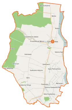 La gmina couvre une superficie de 137,41 km2 pour une population de 5 633 habitants[1] en 2006.