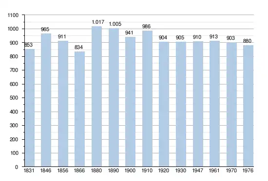 - Sources : INS, Rem. : 1831 jusqu'en 1970 = recensements, 1976 = nombre d'habitants au 31 décembre.