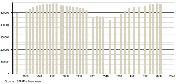 - ↑ Population municipale de référence en vigueur au 1er janvier 2025, millésimée 2022, définie dans les limites territoriales en vigueur au 1er janvier 2024, date de référence statistique : 1er janvier 2022.