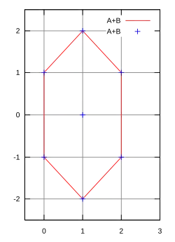 En géométrie, la somme de Minkowski est une opération sur les parties d'un espace vectoriel. À deux parties A et B elle associe leur ensemble somme, formé des sommes d'un élément de A et d'un élément de B :