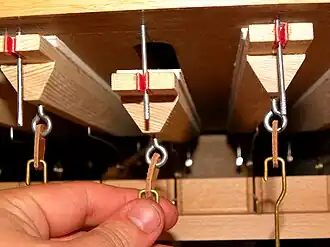 Dans le sommier à ressorts, l'admission du vent dans chaque tuyau est commandée non par une seule soupape commandée par le clavier, mais, au-dessus de cette dernière, par une autre petite soupape maintenue fermée par un ressort. Cette seconde soupape peut être ouverte avec toutes les autres relatives au même jeu, grâce une cheville manœuvrée à l'aide d'une tringlerie commandant l'ensemble. Cette tringlerie est donc soumise à la poussée des nombreuses soupapes qui tendent à se refermer et doit elle-même être maintenue en position, quand on veut actionner le jeu concerné, par un système à cran ou à crémaillère.
