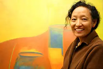 - ↑ (en) Ellen Pearlman, Under Western Influence, Tibetan Artists Turn to Identity Politics, Hyperallergic (en), 30 mars 2015.