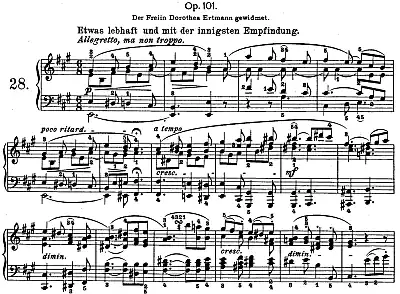 La Sonate pour piano no 28 op. 101 est la première des sonates dites « tardives » de Beethoven, quand sa musique prit une nouvelle direction, plus personnelle, intime, parfois même libre et fantaisiste.