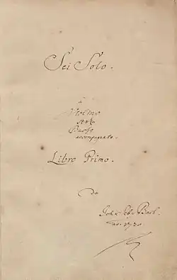- ↑ Les Sonates et Partitas sont parfois désignées en anglais sous le nom de sonatas et partias pour violon seul, conformément aux titres du manuscrit autographe de Bach : Le terme Partia (pluriel Partien) était couramment utilisé dans les régions germanophones à l'époque de Bach, tandis que le terme italien partita a été introduit dans le titre de cet ensemble dans l'édition de 1879 de la Bach Gesellschaft, qui est devenu standard à ce moment-là.