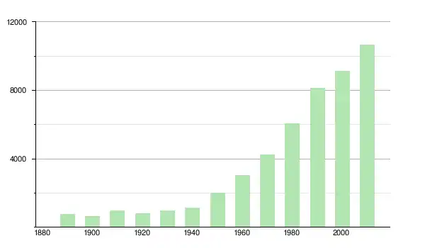 | 1950 | 2 015 | ▲ +74,01 % | |