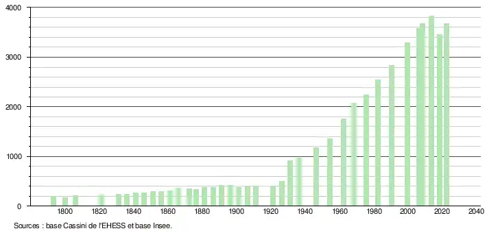- ↑ Fiches Insee - Populations de référence de la commune pour les années 2006, 2007, 2008, 2009, 2010, 2011, 2012, 2013, 2014, 2015, 2016, 2017, 2018, 2019, 2020, 2021 et 2022.