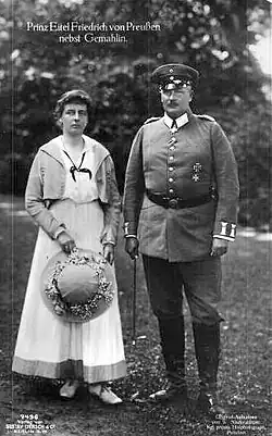 "Le prince Eitel-Frédéric, qui est le favori de son père, étant aussi grand que brutal et aussi féroce que gros, s'est marié presque par contrainte, afin de mettre fin aux affreuses rumeurs qui circulaient à Berlin concernant ses étranges penchants." [2]
