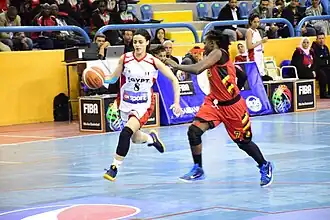 Soraya Degheidy (en blanc, à gauche) contre l'Ouganda pour les qualifications au Championnat d'Afrique féminin de basket-ball 2017.
