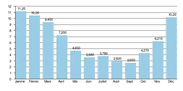 Aux étiages, le VCN3 peut chuter jusque 0,58 m3/s[2], ce qui est fort peu.