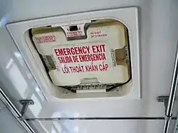 - Trappe d'évacuation : une ouverture dans le toit ou le plancher destinée à n'être utilisée comme issue par les voyageurs qu'en cas de danger.