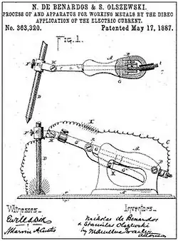 - 1 2 Brevet US 363320 "Process of and apparatus for working metals by the direct application of the electric current" (Procédé et appareil pour le travail des métaux par application directe du courant électrique), Niciiolas De Benardos et Stanislas Olszewski, 17 may 1887.