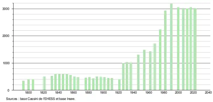 - ↑ Fiches Insee - Populations de référence de la commune pour les années 2006, 2007, 2008, 2009, 2010, 2011, 2012, 2013, 2014, 2015, 2016, 2017, 2018, 2019, 2020, 2021 et 2022.