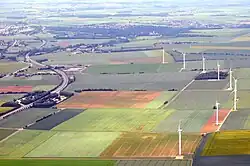 L'occupation des sols de la commune, telle qu'elle ressort de la base de données européenne d'occupation biophysique des sols Corine Land Cover (CLC), est marquée par l'importance des territoires agricoles (93,5 % en 2018), en diminution par rapport à 1990 (95,2 %). La répartition détaillée en 2018 est la suivante : terres arables (78,9 %), zones agricoles hétérogènes (14,4 %), zones urbanisées (6,2 %), forêts (0,3 %), prairies (0,2 %)[17]. L'évolution de l'occupation des sols de la commune et de ses infrastructures peut être observée sur les différentes représentations cartographiques du territoire : la carte de Cassini (XVIIIe siècle), la carte d'état-major (1820-1866) et les cartes ou photos aériennes de l'IGN pour la période actuelle (1950 à aujourd'hui)[Carte 2].